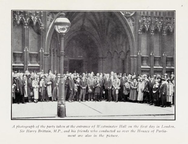 Canadian News Editors Party at Entrance to Westminster Hall, June 1924. Photo from Pilgrims of the Press.